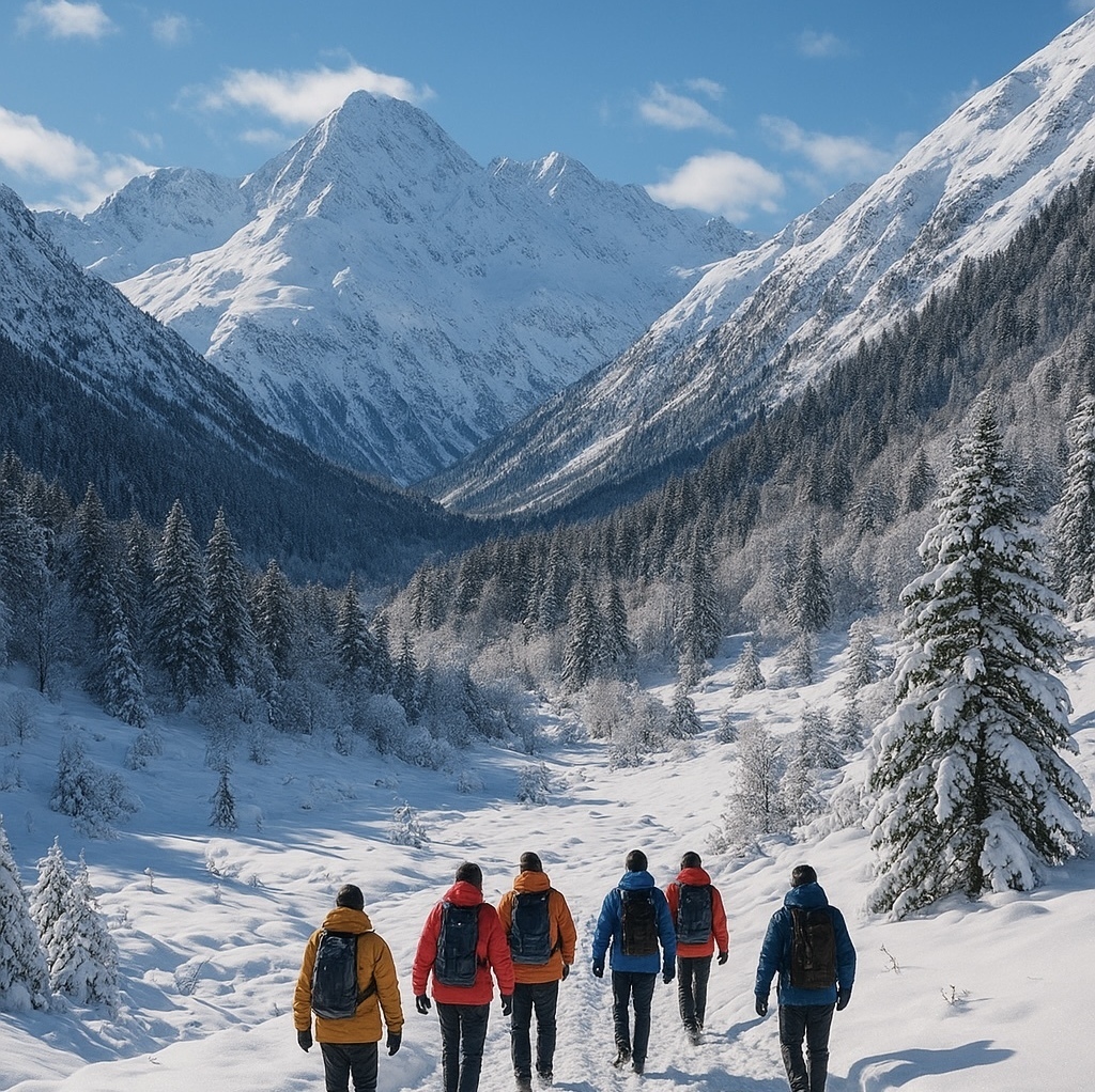 Глубокое горное ущелье с панорамами ледников, каньонов и спокойной атмосферой настоящего Кавказа.